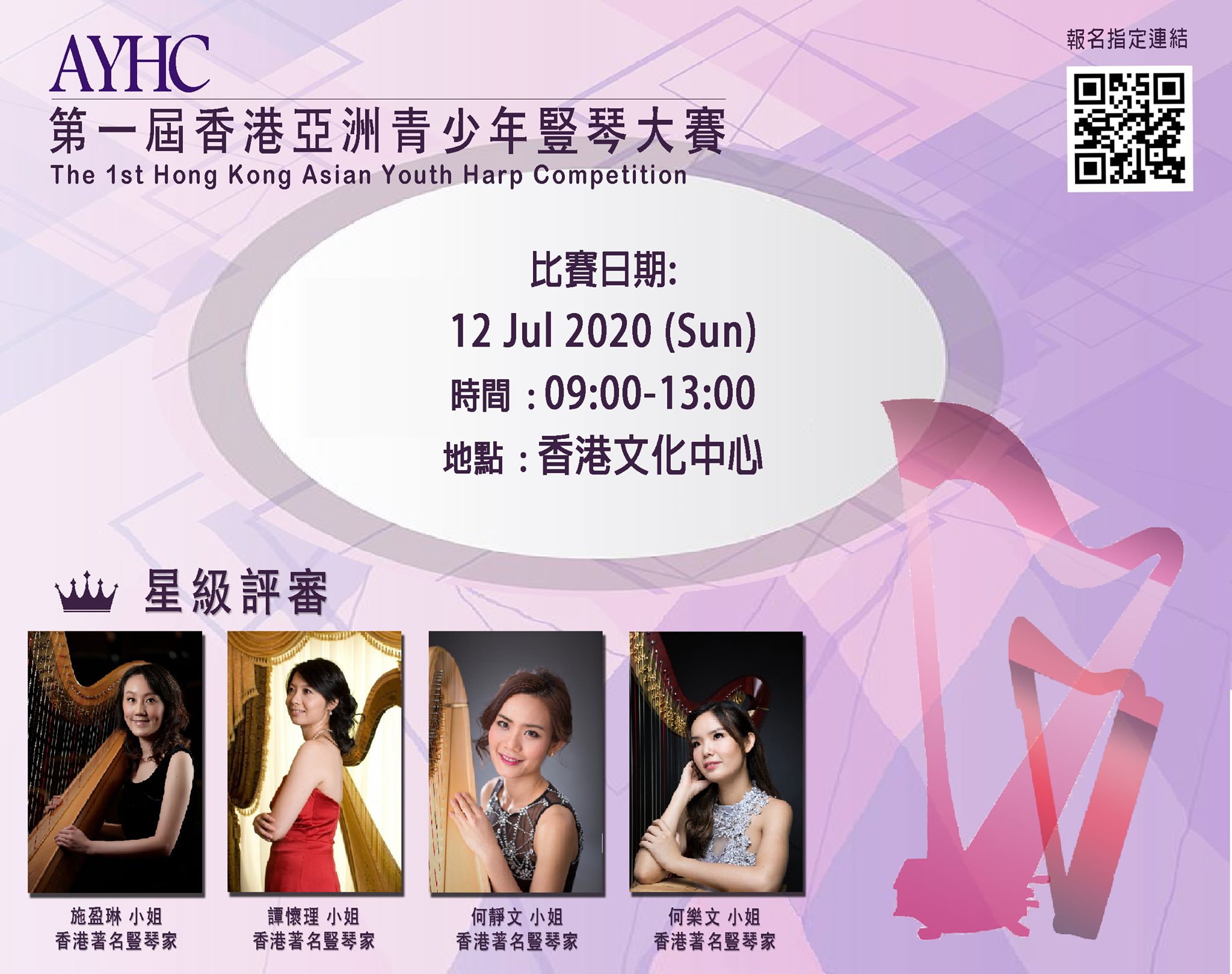 關於香港亞洲青少年豎琴大賽 香港亞洲青少年豎琴大賽目的是希望透過比賽去建立一個豎琴演奏平台,互相觀摩和學習,藉此提升兒童及青少年對音樂的興趣及水平,拓寬視野,鼓勵學員不斷提升個人技術及音樂修養,並引發社會人士對推動兒童及青少年豎琴教育的關注。 ABOUT THE COMPETITION THE AIM OF THE HONG KONG ASIAN YOUTH HARP COMPETITION IS TO BUILD A PERFORMANCE PLATFORM FOR THE HARPISTS, TO OBSERVE AND LEARN FROM EACH OTHER, SO AS TO BROADEN THE HORIZONS OF THE YOUNG HARPISTS AND IMPROVE THEIR TECHNIQUE AND MUSICIANSHIP.