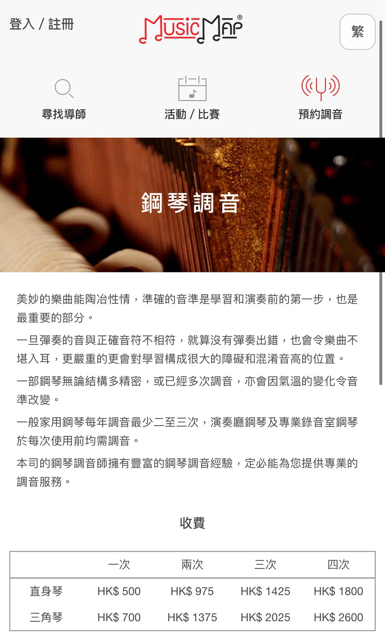 | Date | 立即預約Music Map鋼琴調音 |