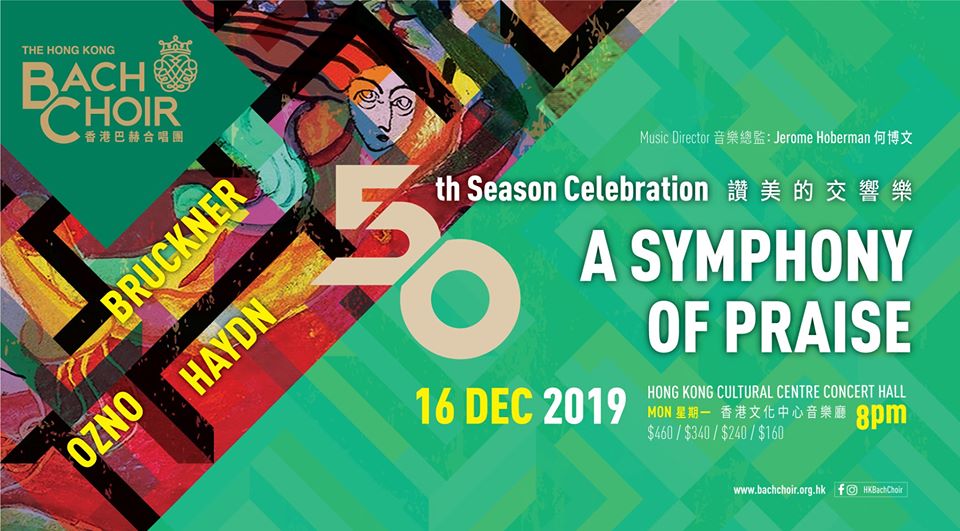 A Symphony of Praise sets in illuminating opposition two superb but rarely performed works from 18th- and 19th-century Austria by two of music’s greatest masters, and a new work by one of Hong Kong’s most respected musicians and composers. The programme is in fact a symphony in three movements — from the dark tempestuousness of Haydn Symphony No. 95 in C minor, to OZNO Cantata Nr. 3 “Gabriel”, to the brilliant jubilation of C major in Bruckner Te Deum. A Symphony of Praise is generously supported by the Hong Kong Arts Development Council. The new work, OZNO Cantata Nr. 3 “Gabriel”, is commissioned by Hong Kong Bach Choir in 2019 with sponsorship from CASH Music Fund.