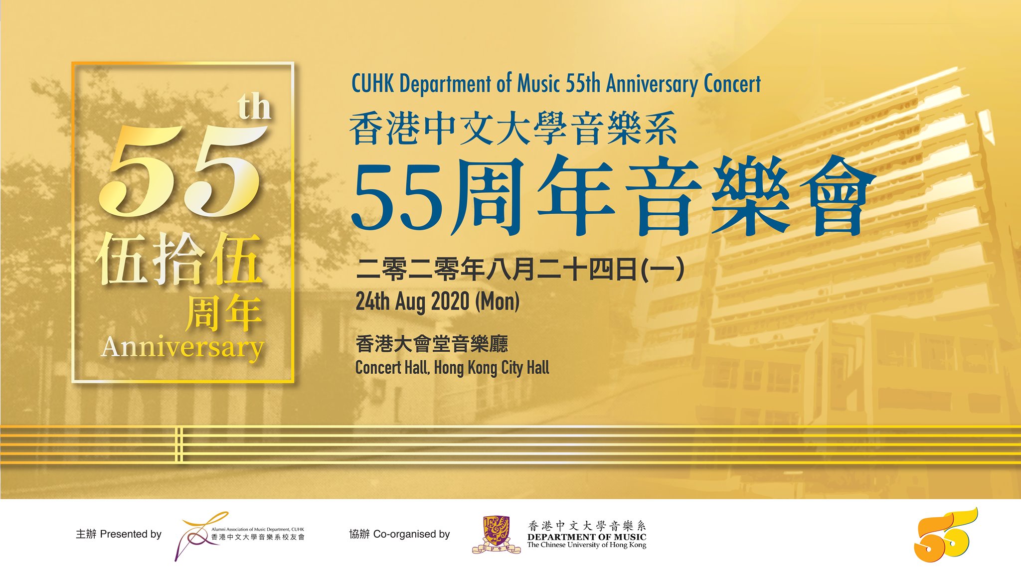 為慶祝香港中文大學音樂系成立五十五周年,香港中文大學音樂系校友會(校友會)將於2020年8月24日(星期一),在香港大會堂音樂廳合辦一場音樂會。屆時,音樂系師生校友聯同鄺勵齡、吳智誠、盧思泓、楊偉傑、陳璧沁、盧厚敏、葉詠媛、劉卓熙等一眾校友,組成不同小組、中樂團、合唱團、管樂團以及管弦樂團,演繹古今中外的非凡樂曲。 我們希望能透過這個喜悅的盛會,募集超過港幣三十萬元。所有收益扣除音樂會基本開支後,校友會將全數捐予音樂系發展基金。我們將於校友會網頁刊登財務預算及報表,供各位贊助人參閱。 捐款港幣一百五十元正起,即可成為尊貴的贊助人!為表謝意,校友會已預準備特別禮品,請踴躍支持音樂會,為音樂系送上最難忘的生日祝福! 香港中文大學音樂系校友會 2019年11月1日