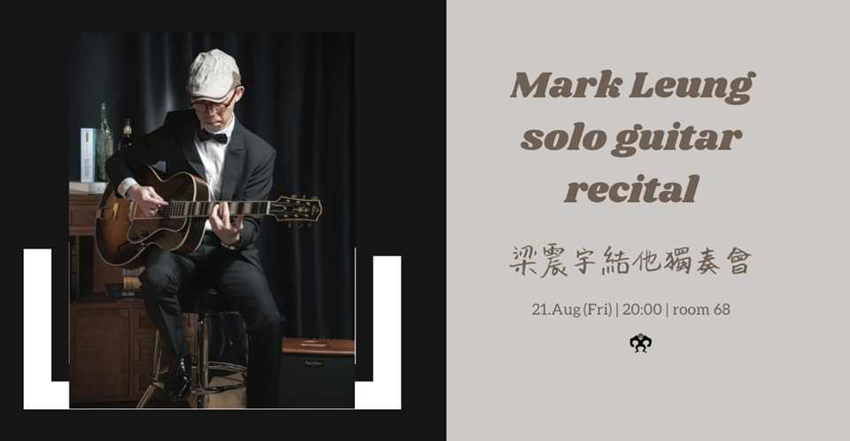 Mark Leung 曾師隨古典結他演奏家陳國華先生,故與獨奏音樂結下不解之緣。因緣際會,後來轉攻爵士樂,並曾師隨爵士結他手孫立功先生學習,亦曾於澳門及葡萄牙,師隨葡國爵士音樂家Zé Eduardo,Nuno Ferreira及Mario Delgado等學習爵士樂,深受啟發。 Mark Leung studied under the classical guitarist Stony Chan, so he has an enduring bond with solo music. Switching to jazz, he then studied with jazz guitarist Teddy Suen as well as with Portuguese jazz musicians such as Zé Eduardo, Nuno Ferreira and Mario Delgado in Macau and Portugal who deeply inspired him. 是次結他獨奏會,無論閣下是爵士或結他樂迷、欲支持本地店舖及音樂家,萬勿錯過! Whether you are a fan of jazz or guitar, and want to support local shops and musicians, don't miss this solo guitar recital!
