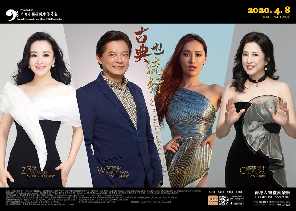 莫華倫 藝術總監 / 監製 / 世界著名男高音 世界著名香港男高音,畢業於曼哈頓音樂院的音樂碩士,夏威夷大學音樂學士。中國三大男高音之一。2008年莫氏獲義大利政府授予「義大利團結之星騎士勳章」及法國政府授予「法國藝術騎士勳章」。2010年榮獲世界傑出華人獎,2011年獲香港特區政府頒發「榮譽勳章」。2015年獲頒發第二屆世界廣府人「十大傑出人物」。2018年他再次獲得義大利政府頒發「義大利之星軍官勳章」。 鄭慧博士 香港著名鋼琴家 中央音樂學院香港基金主席,施坦威藝術家鄭慧,為香港演藝學院首屆畢業生,後畢業於美國寇蒂斯音樂學院,並先後於美國耶魯大學及紐約州立大學取得音樂碩士及博士學位。她獲獎無數,享「貝多芬第五代傳人」及「鋼琴女詩人」美譽,於2009年榮膺「香港十大傑出青年」。 周旋 著名女高音歌唱家 著名青年女高音歌唱家、國家一級演員、中國音樂學院碩士學位、中國新十大女高音歌唱家。曾榮獲中國金唱片獎、第二屆國際華人聲樂比賽金獎、國家廣播電影電視總局“金號獎”— 全國聽眾最喜愛的歌手新人獎、最具人氣獎和十佳歌手獎、首屆浙江音樂獎藝術成就獎、文化部舉辦的全國“愛我中華”優秀歌手大賽民族組第二名和第十四屆CCTV青年歌手電視大獎賽優秀獎等眾多國內外大獎。 王冰冰 旅意抒情女高音 作為活躍在歐洲歌劇舞臺上的旅意華人女高音歌唱家,中國中央電視台新“十大女高音歌唱家”之一,世界傑出藝術華人大獎獲得者,女高音王冰冰是第一位畢業於義大利米蘭威爾第國立音樂學院歌劇表演專業華人碩士。 主辦機構: 中央音樂學院香港基金有限公司
